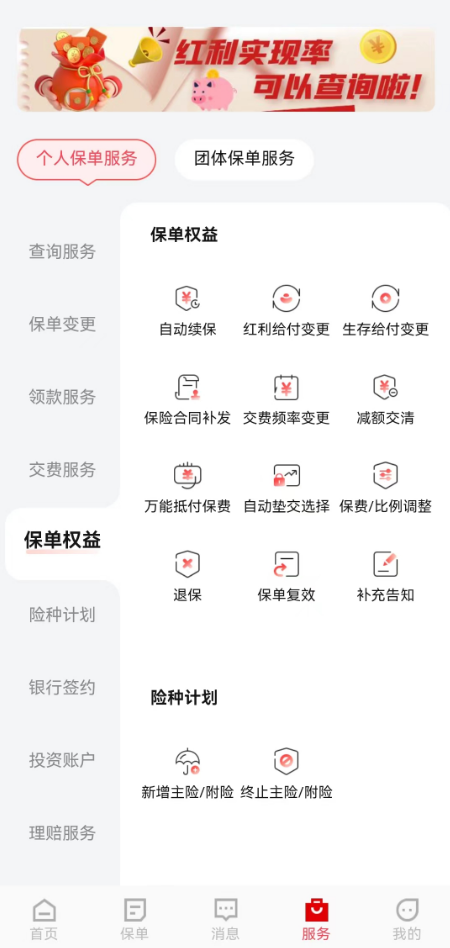 (一)方法一:在“保单权益”目录中找到“退保”功能