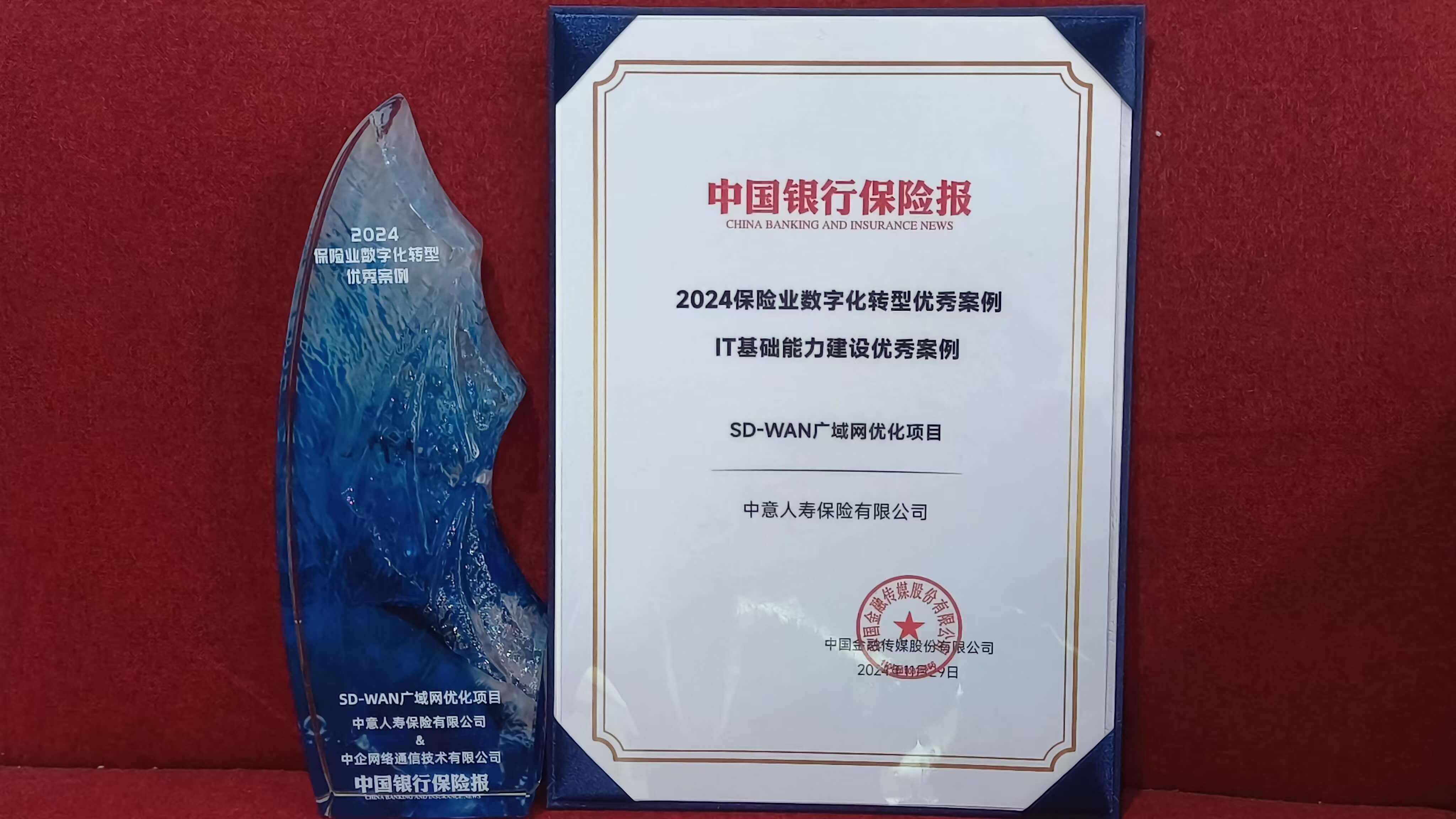 11月29日,由行业权威媒体《中国银行保险报》主办的“2024金融业(保险)数字化转型”大会在广东汕头召开,会上发布了“2024中国保险业数字化转型案例”。幸运飞行艇官方开奖直播(以下简称中意人寿)创新推出的员工福利网络服务平台项目和SD-WAN广域网优化项目分别荣获“数字化运营优秀案例”和 “IT基础能力建设优秀案例”两项大奖,彰显了公司在推动保险业数字化转型方面的不懈努力及信息科技建设的领先实力,为公司的数字化转型之路再添浓墨重彩的一笔。